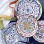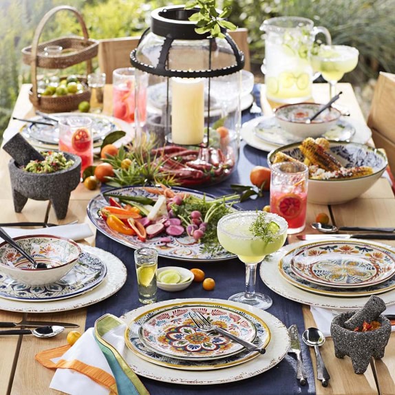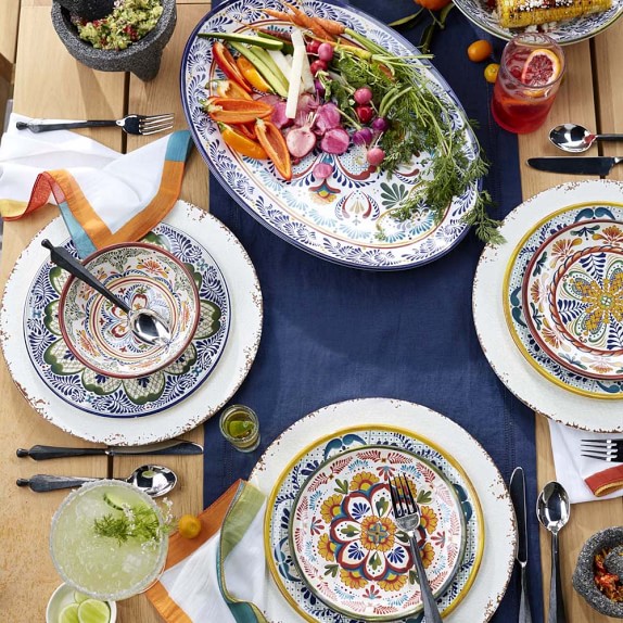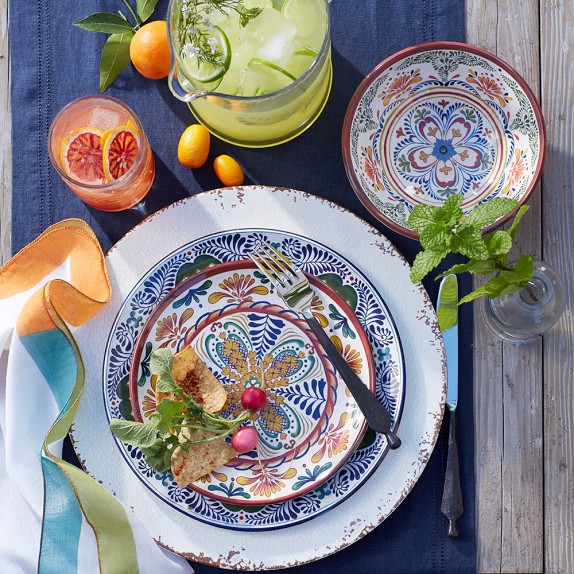 The rich colors and stylized motifs made famous by Mexican Talavera pottery find new expression in durable, shatterproof melamine. With the help of new crafting techniques, we've re-created the refined texture and heft of ceramics in these durable, scratch-resistant plates—the ideal choice for outdoor and casual meals.