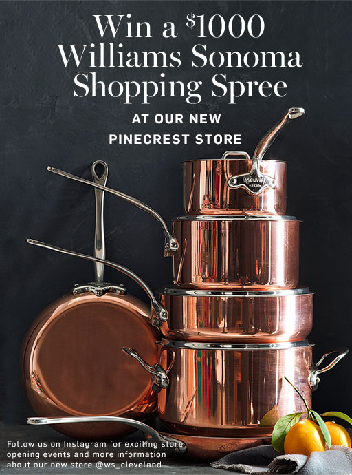 Our beautiful new Williams Sonoma store at Pinecrest opens June 8. To celebrate, we're treating one lucky winner to a $1000 grand–opening shopping trip.