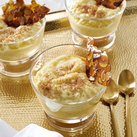 A rice pudding sweetly spiced with cinnamon, arroz doce is a popular dessert in Portugal at Christmastime and represents joy and unity. It’s different from other rice puddings because lemon is added for brightness, while egg yolks make it exceptionally thick, creamy and custardlike. This comforting dessert is easy to prepare, a boon for busy cooks when you’re entertaining during the holiday season. If you like, garnish the pudding with chunks of peanut brittle.