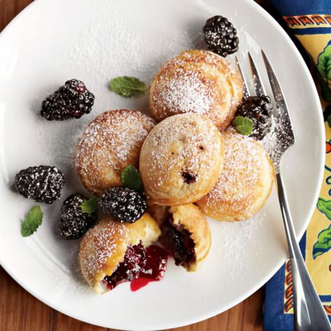 With a spoonful of homemade blackberry jam tucked inside, these delectable pancakes are perfect for a summer brunch.