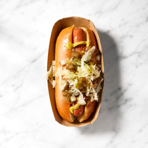 Although Massachusetts-style hot dogs haven’t always received the same fame as a Chicago or New York dog, this regional variation has its own iconic style thanks to its bun. Not only are they exceptionally soft and designed to stand upright, but they’re also steamed instead of toasted—a hallmark of the beloved frank served at Fenway Park. If you’d like to grill your franks instead of (or in addition to) boiling them, preheat a cast-iron skillet or griddle over medium-high heat. Add the hot dogs and cook, turning occasionally, until browned and blistered on all sides, 6 to 8 minutes. Grilling will help the hot dog retain moisture while also creating a nice grilled texture.