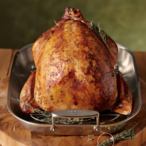 Transfer the turkey to a carving board, cover loosely with foil and let rest for 20 to 30 minutes before carving. If desired, reserve the pan drippings for making gravy. Serves 12 to 14.