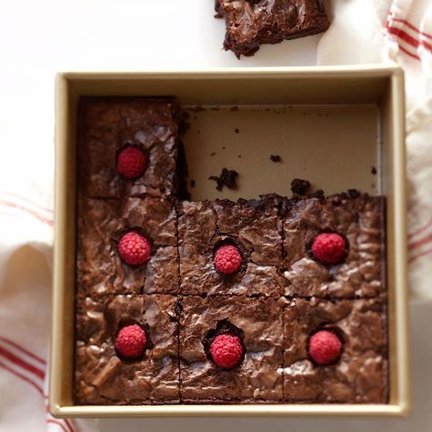 Garnishing brownies with raspberries puts a fresh summertime spin on this year-round treat. Serve the brownies with raspberry swirl ice cream to beat the heat, or drizzle them with a sweet-tart raspberry sauce.