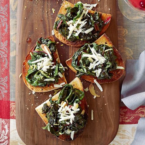 Make It Ahead: Sauté the chard, cover, and refrigerate in the pan for up to 24 hours. Before serving, reheat the chard, toast the bread and assemble the bruschettas. Serves 4.