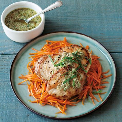 Chicken Cutlets and Carrots with Mint Pesto