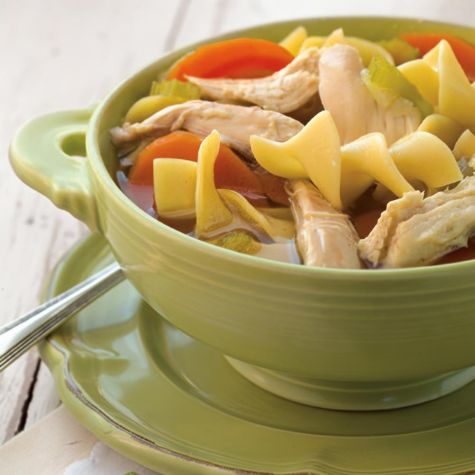 Add the chicken and pasta and simmer until heated through, about 5 minutes. Season with salt and pepper. Ladle into warmed bowls and serve immediately. Serves 4 to 6.