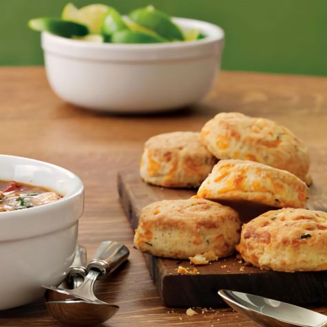 Laced with fresh chives and cheddar cheese, these tender biscuits are the perfect accompaniment to our White Chicken Chili.