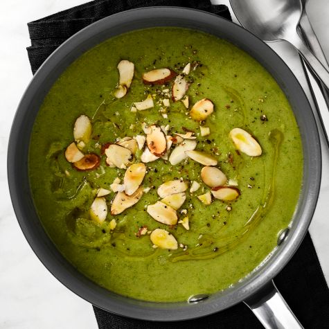 Serve in individual bowls and garnish with the almonds and a drizzle of olive oil. Serves 6.
