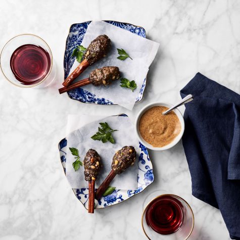 Chanie Apfelbaum, a cookbook author and the blogger behind Busy in Brooklyn, gives these kebabs a double dose of cinnamon: Ground cinnamon is blended into the meat mixture along with other warming spices, then the mixture is shaped into logs and skewered onto cinnamon sticks. Pair this fun appetizer with Chanie’s fresh spin on tahini, made with almond butter instead of the traditional sesame seeds.