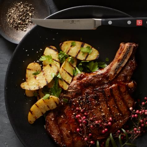 Coriander and Peppercorn Rib Eye with Grilled Potatoes