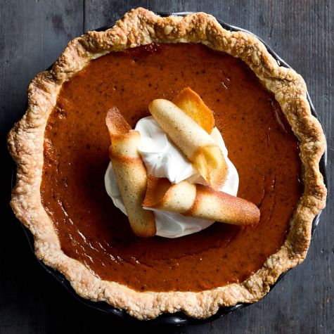 Bourbon Pumpkin Pie with Nutmeg Tuiles