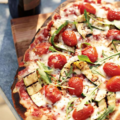 Focaccia Pizza with Zucchini, Tomatoes and Arugula
