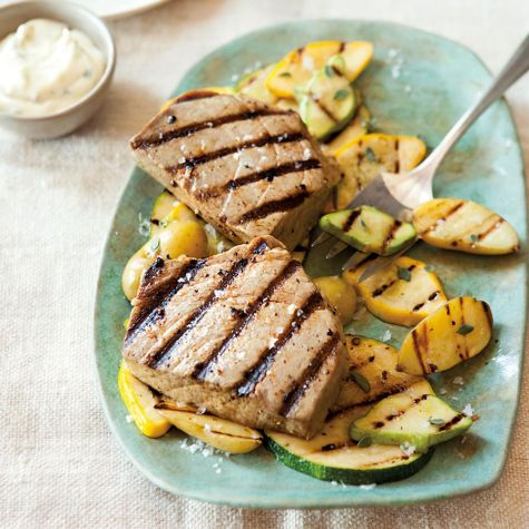 Grilled Tuna and Vegetables with Fresh Herb Mayonnaise