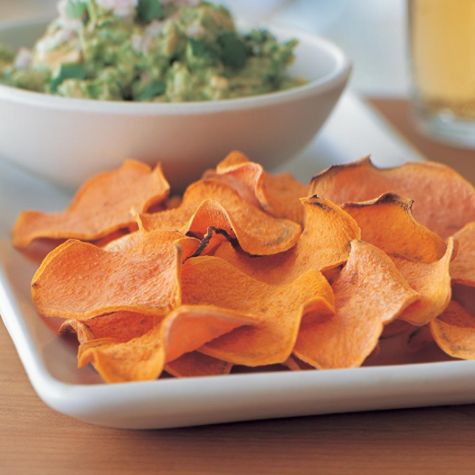Instead of sweet potato chips, you can use 8-inch corn tortillas, cut into wedges. Stack the tortillas and, using a sharp knife, cut the stack in half. Then cut each half into 8 wedges and continue to cook according to the first step. Or, you can substitute your favorite purchased chips.