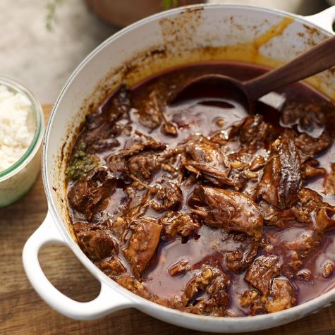 Return all the beef to the pot, add the braising sauce and water and bring to a simmer. Cover the pot tightly with aluminum foil and cover with the lid. Transfer to the oven and cook until the meat is fork-tender, about 3 hours.