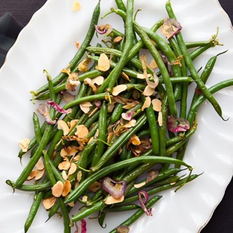 Haricots Verts with Toasted Almonds and Caramelized Shallots
