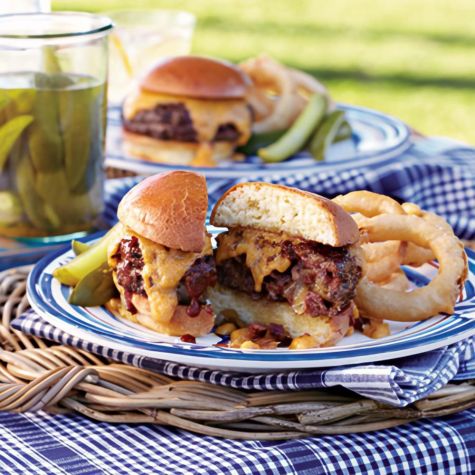 Stuffed Barbecue Burgers with Beer-Cheddar Fondue