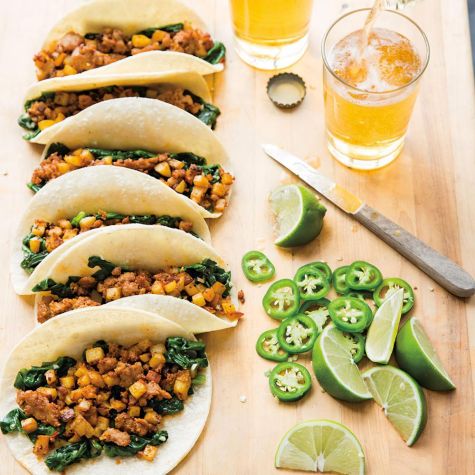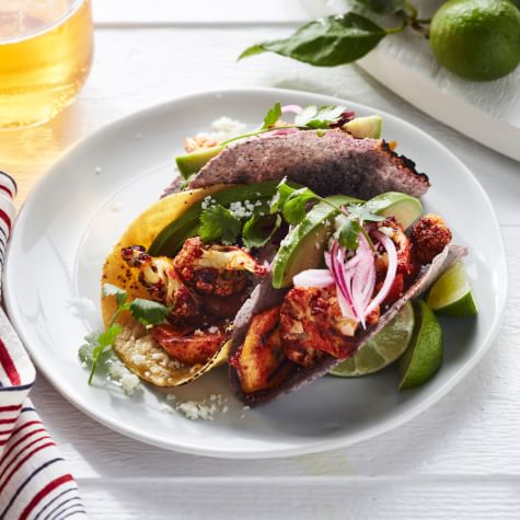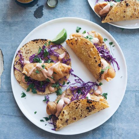 Fried Avocado Tacos with Tomato-Jalapeño Salad