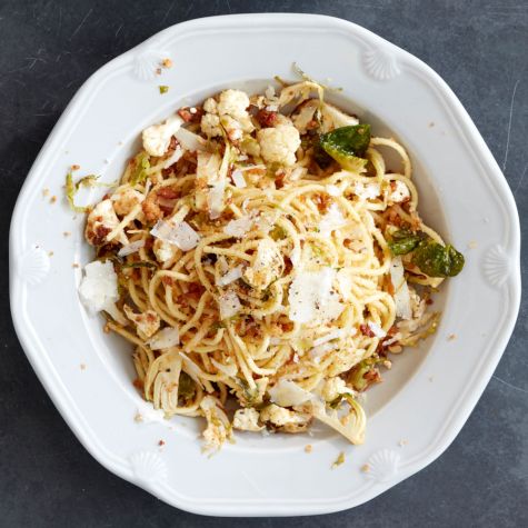 Spaghetti with Cauliflower and Brussels Sprouts