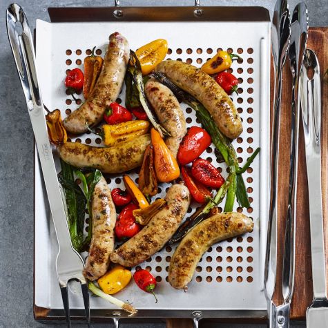 Grilled Sausages and Cipollini Onions with Alabama BBQ Sauce