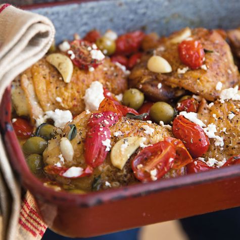 Roast Chicken Thighs with Tomatoes, Olives and Feta