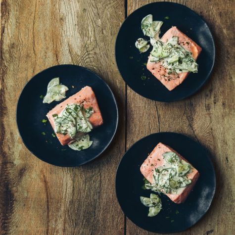 Salmon Fillets with Cucumber-Yogurt Sauce
