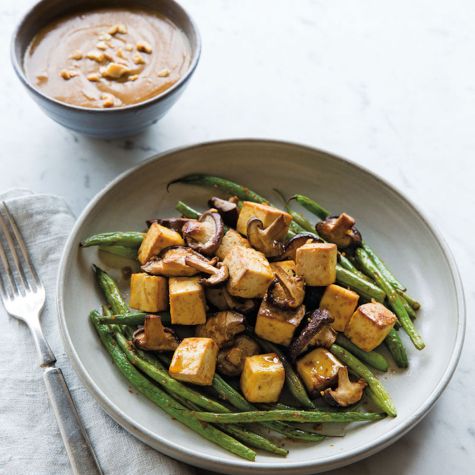 Baked Tofu with Green Beans, Shiitakes & Peanut Sauce