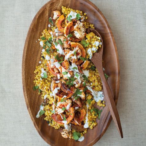 Fregola with Cauliflower, Delicata Squash and Harissa