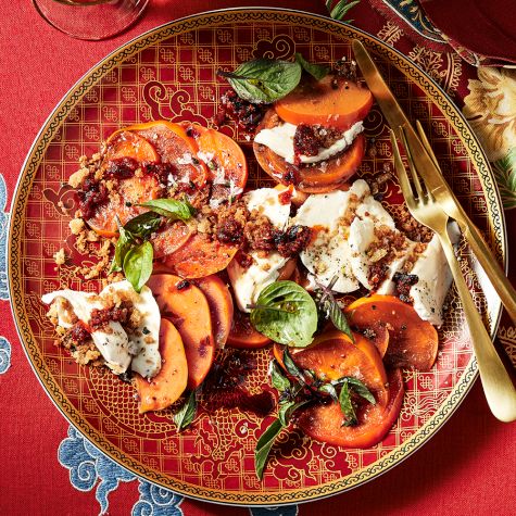Featuring crisp Fuyu persimmons, fresh mozzarella cheese and fried bread crumbs, this is chef Melissa King’s spin on the Italian caprese salad, traditionally made with tomatoes. It’s a dish that the Top Chef winner would serve at a Lunar New Year celebration when she gathers with loved ones over a delicious feast. Finish the salad with fresh basil leaves plus a drizzle of chili crisp for a hit of heat and crunch.