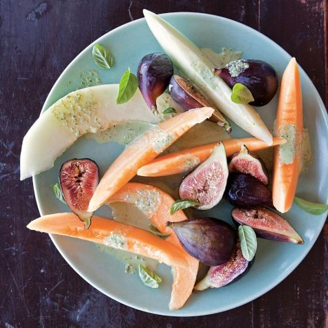 Melon and Fig Salad with Basil Cream