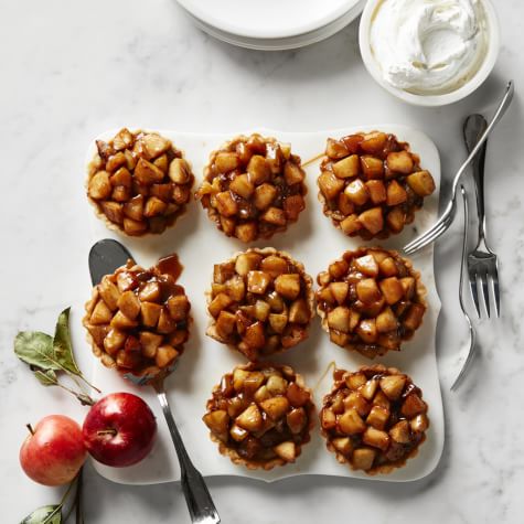 Serve the tarts warm or at room temperature topped with ice cream and a drizzle of the salted caramel sauce. Makes 10 mini tarts.