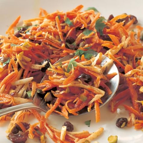 Harissa, a North African pepper-and-spice paste, adds a suggestion of heat to this salad, a flavorful tangle of earthy and sweet ingredients. Toasted spices infuse the dish with their warmth, while the smooth richness of extra-virgin olive oil brings depth and harmonizes the flavors.