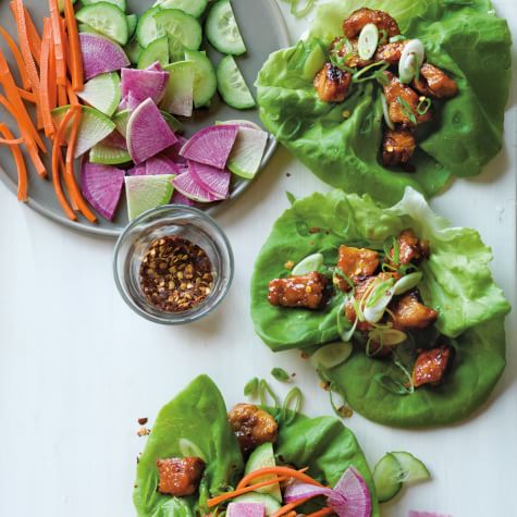 The Instant Pot shows off its versatility in this version of spicy chicken lettuce wraps, acting first as a sauté pan, then as a pressure cooker, and then again as a sauté pan for thickening the sauce. Pass a platter with the chicken, lettuce, and all the toppings at the table and let diners assemble their own wraps as they like.