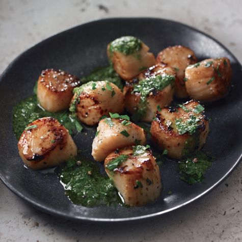 Sea scallops have a mild, slightly sweet flavor that pairs perfectly with a piquant salsa verde. Take care not to overcook the scallops, which can toughen if exposed to heat for too long.