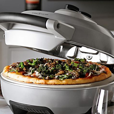 Using the pizza peel, transfer the pizza to a cutting board. Preheat the pizza maker again, assemble the remaining pizza and bake on the classic setting. Cut the pizza into slices and serve immediately. Makes two 10-inch (25-cm) pizzas.