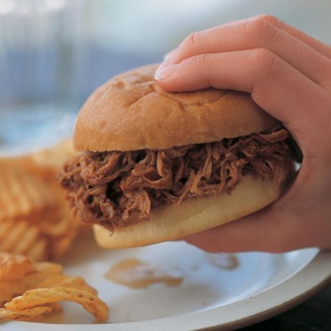 Serve these hearty sandwiches with homemade or good-quality prepared coleslaw or potato salad from your favorite deli or upscale market. Traditionally, coleslaw is served atop the pork in the sandwich.