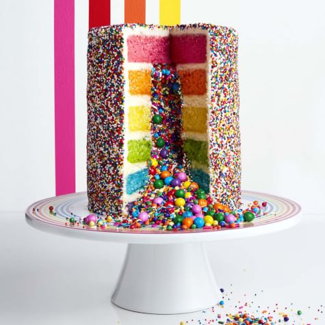 We teamed up with Amirah Kassem's SoHo-based Flour Shop bakery to bring you an exclusive kit for whipping up your own version of the Instagram-famous Rainbow Explosion Cake at home. Start by combining the premium cake mix and coloring gels to bake the six rainbow-hued layers, then use the cream cheese frosting mix and colorful candies to frost, fill and decorate your surprise-filled dessert.