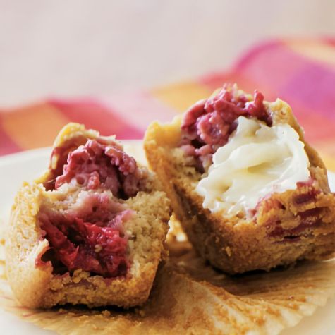 Spoon the batter into the prepared muffin cups, filling each to within 1/4 inch of the rim. Bake until a toothpick inserted into the center of a muffin comes out clean, about 25 minutes if using fresh raspberries or 25 to 30 minutes if using frozen raspberries.