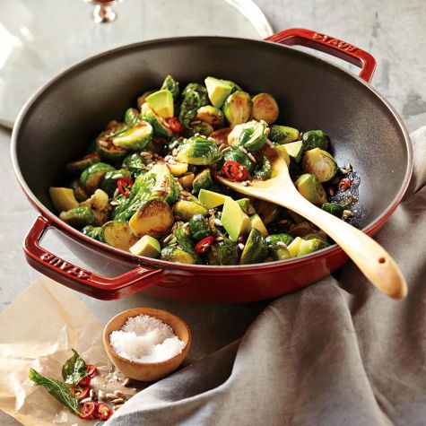 This recipe comes to us from Chef Dan Kluger, who creates the farm-to-table menu at New York City’s ABC Kitchen, where he makes the most of seasonal produce. Here, he roasts brussels sprouts until they’re slightly sweet, then adds unexpected flavors with lightly fried herbs, avocado, sunflower seeds and chili pepper.