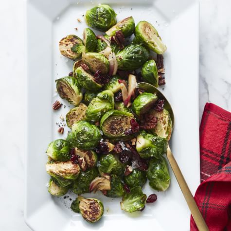 Roasted Brussels Sprouts with Dried Cranberries and Pecans