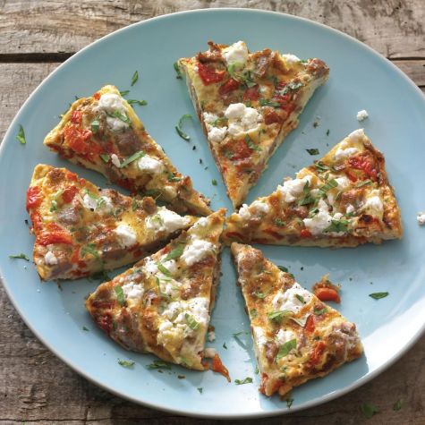 This frittata combines a trio of favorite Mediterranean flavors: Italian sausage, red bell peppers and feta cheese. Because it tastes equally delicious warm or at room temperature, the frittata is perfect for a brunch buffet.