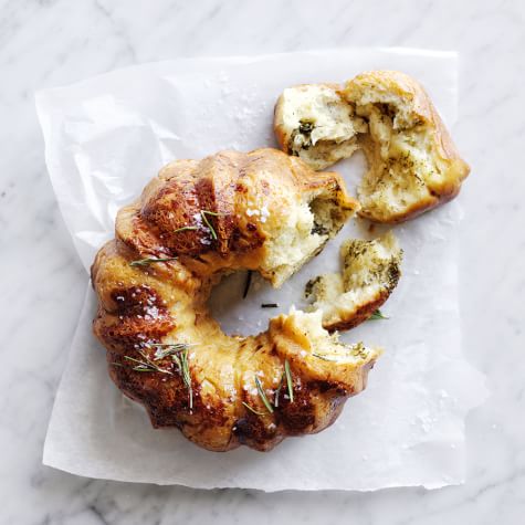 The chefs in the Williams Sonoma Test Kitchen are self-described dunkers. After removing their savory “Bundt bread” from the oven, they grabbed a jar of marinara sauce and heated it up, then pulled off chunks of the warm bread and started dipping. The heavenly combo of baked pizza dough, Parmesan cheese, fresh herbs and marinara is reminiscent of a pizza pie. You can make the dough yourself or to streamline prep, purchase it from the supermarket or your favorite pizzeria. Be sure to use a small Bundt pan with a 6-cup (1.5-l) capacity, not a standard-size pan.