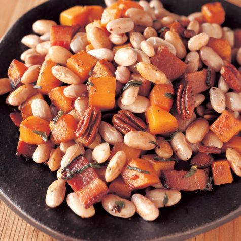 Woodsy fresh sage pairs nicely with a variety of autumnal ingredients like creamy-textured cubes of sweet butternut squash and earthy-tasting shelling beans. Toasted nuts and salty bacon lend welcome contrasting flavors and textures to round out the dish.