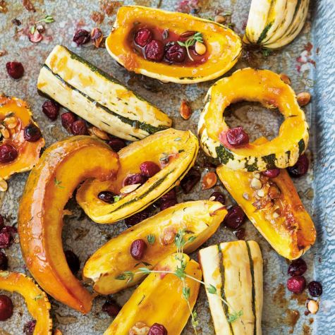 Roasted Pumpkin with Garlic, Sweet Potatoes and Cherry Tomatoes
