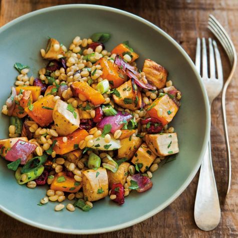Wheat Berries with Roasted Parsnips, Butternut Squash and Dried Cranberries