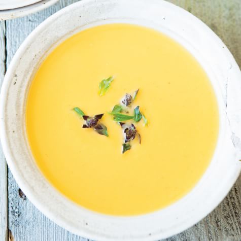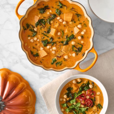 Coconut-Turmeric Soup with Sweet Potatoes, Chickpeas and Chard