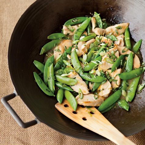 Mint leaves add a fresh, bracing quality to an easy chicken stir-fry of pure, simple flavors. Sugar snap peas provide their natural sweetness and irresistible crunch, while fragrant lemon zest and juice add a welcome brightness.