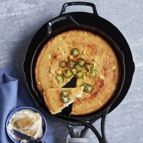 Jalapeño honey brings the perfect balance of sweetness and spice to our corn bread, which is baked in a cast-iron skillet for a nicely crisped crust. For an extra kick, add a pinch of cayenne pepper to the honey mixture. Buttermilk in the batter helps ensure the bread is especially moist.
