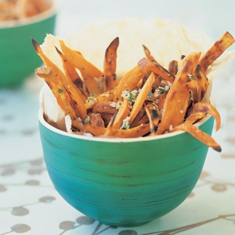 These crisp sweet-potato oven fries are delicious served alongside grilled steaks or roast pork. Use the orange-fleshed sweet potatoes sometimes labeled garnet yams or jewel yams, and choose organic ones if possible since they are not peeled for this recipe.