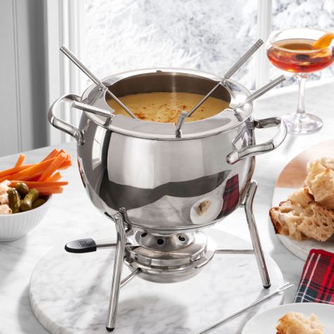 Taking its name from fondre, French for “to melt,” fondue is a favorite served fireside in ski lodges and chalets. A natural for casual winter parties, this convivial style of tabletop cooking is best enjoyed with fine wines and good conversation. In this delicious version, three different cheeses are combined for a complexly flavored result.